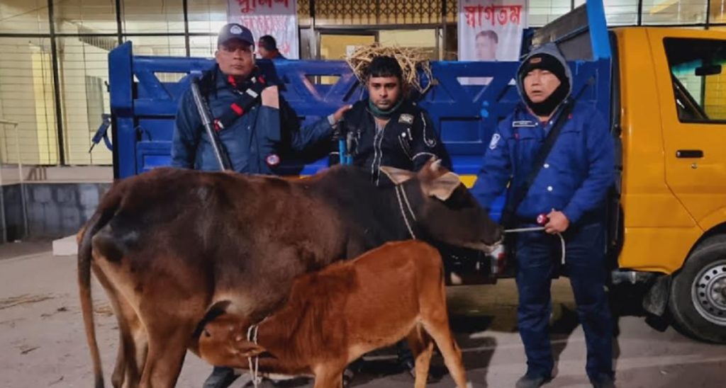 ফেনীর সোনাগাজীতে দুটি চেরাই গরুসহ মেহেদী হাসান মাসুদ (২৬) নামে এক যুবককে গ্রেফতার করেছে পুলিশ।