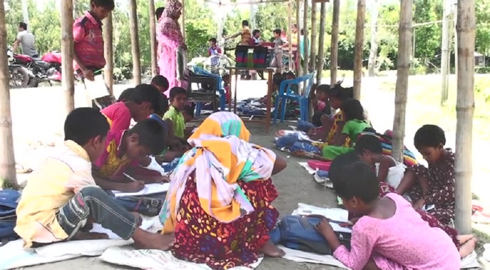 স্কুল নদীতে বিলীন, রোদ-বৃষ্টিতে খোলা মাঠে পাঠদান