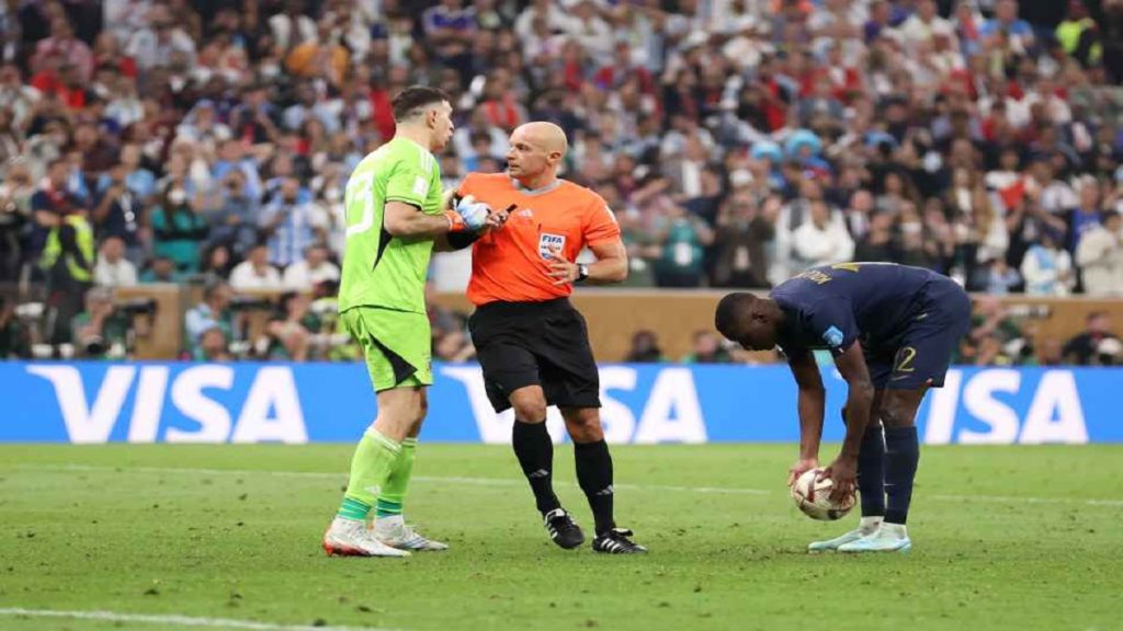 বিশ্বকাপ ফাইনালের পেনাল্টি শুটআউটে উদ্ভট আচরণের মাধ্যমে ফরাসি শুটারদের বিভ্রান্ত করেছিলেন এমিলিয়ানো মার্টিনেজ। আর্জেন্টাইন গোলরক্ষকের বিরুদ্ধে এমন অভিযোগের ভিত্তিতে এবার পেনাল্টির নিয়মে পরিবর্তন আনতে যাচ্ছে ফিফা। ব্রিটিশ গণমাধ্যম ‘দ্যা সান’ এর দাবি আন্তর্জাতিক ফুটবল অ্যাসোসিয়েশনের আগামী সভায় আসতে যাচ্ছে নতুন সিদ্ধান্ত।