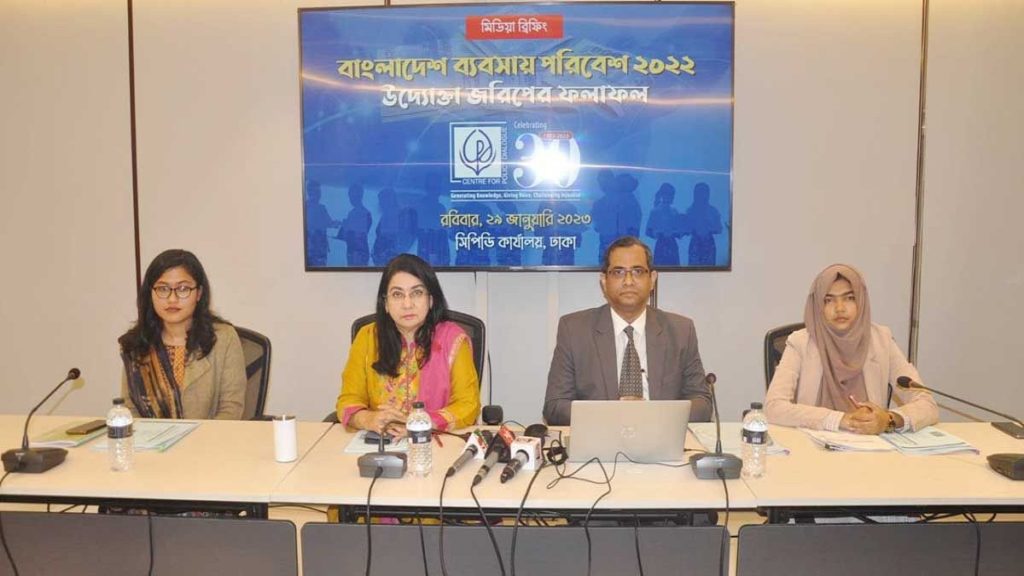 ঢাকা, চট্টগ্রাম, নারায়ণগঞ্জ ও গাজীপুরের ব্যবসায়ীদের মধ্যে জরিপের মাধ্যমে প্রতিবেদনটি তৈরি করা হয়েছে। সিপিডির গবেষণা পরিচালক ড. খন্দকার গোলাম মোয়াজ্জেম জানান, ২০২১ এর তুলনায় ২০২২ সালে ব্যবসার পরিবেশ দুর্বল ছিল। কর কাঠামোতেও ভারসাম্য আনা যায়নি। সড়ক, রেল ও নৌপথে অনেক অবকাঠামো মানসম্মত নয়।