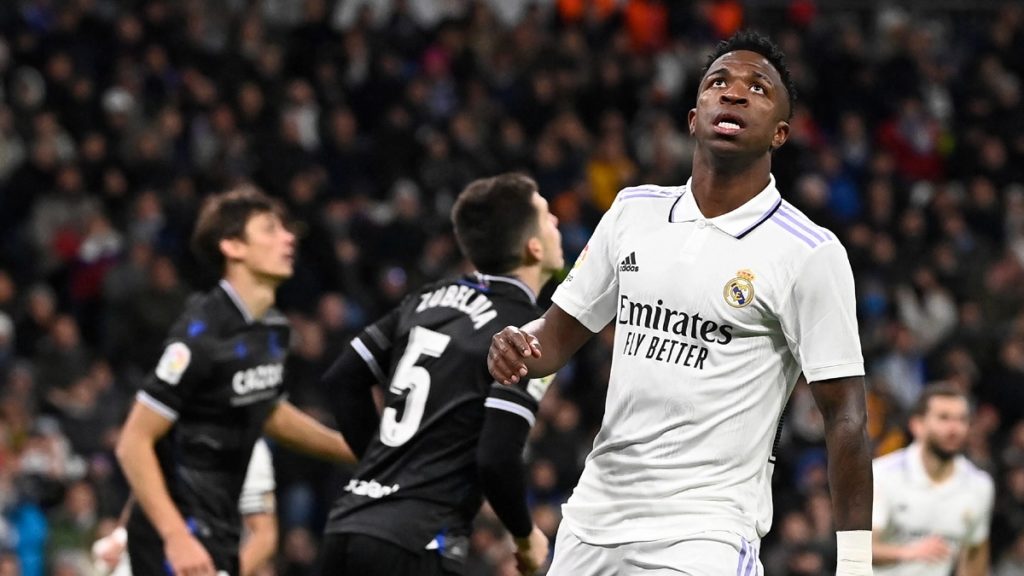 প্রথমার্ধে আলেক্সান্ডার সোরলথ সহজ সুযোগ মিস করলে লিড নিতে পারেনি সোসিয়েদাদ। এতেই নড়েচড়ে বসে আনচেলত্তির শিষ্যরা। দুই উইং দিয়ে ভিনিসিয়াস এবং রদ্রিগো একের পর এক কাঁপিয়ে দিতে থাকেন সোসিয়েদাদের রক্ষণ। ইগর জুবেলদিয়া ও আইহেন মুনোজকে নাটমেগ করে গোলরক্ষককে একা পেয়েও বল জালে জড়াতে পারেননি ভিনিসিয়াস।