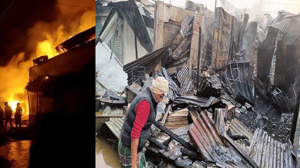 স্থানীয়রা জানান, শুক্রবার ভোর রাতে বৈদ্যুতিক শর্ট সার্কিট থেকে আগুনের সূত্রপাত হয়। পরে বাজারের নৈশপ্রহরীর চিৎকারে স্থানীয়রা এসে আগুন নেভানোর চেষ্টা করেন। এ সময়ই ফায়ার সার্ভিসে খবর দেয়া হয় বলে জানা গেছে।