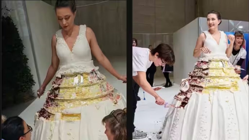 সাদা গাউন পরে হাঁটছেন এক নারী। আর তার পোশাক কেটেকেটে খাচ্ছেন অতিথিরা। তারা আসলে পোশাক খাচ্ছেন না। খাচ্ছেন, পোশাকের আদলে বানানো কেক। খবর ভারতীয় গণমাধ্যম এনডিটিভির।