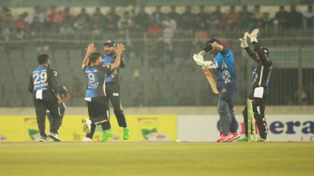 শেষ দুই ওভারে জয়ের জন্য রংপুর রাইডার্সের দরকার ছিল ৭ রান। কিন্তু নাসির ১৯তম ওভারে পরপর দুই বলে শামীম ও রকিবুলকে বোল্ড করলে টানটান উত্তেজনা ছড়ায় ম্যাচে। ম্যাচে ২০ রান দিয়ে ৪ উইকেট নেয়া নাসির ১৬ উইকেট নিয়ে অনেকটাই এগিয়ে গেছেন সর্বোচ্চ উইকেট শিকারির তালিকায়।