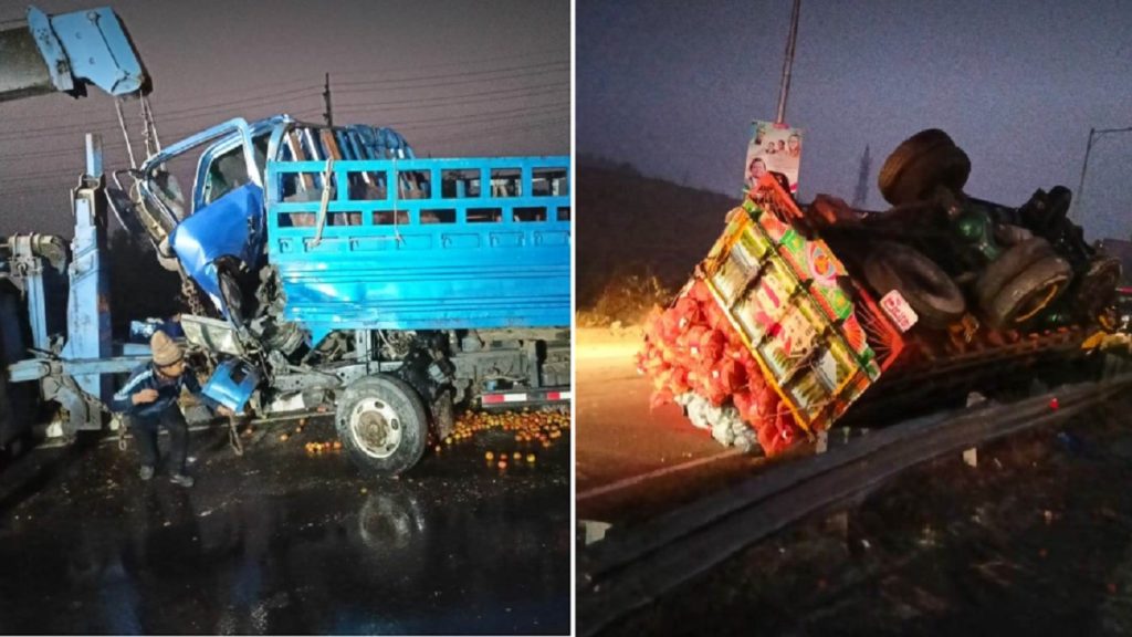 শ্রীনগর ফায়ারসার্ভিস সূত্রে জানা যায়, ভোরে এক্সপ্রেসওয়ের ঢাকামুখী লেন হয়ে রাজধানীর অভিমুখে দ্রুত গতিতে পিকআপ ও ট্রাকটি চলছিল। এ সময় বেজগাঁও এলাকায় ট্রাক ও পিকআপ দুটি পৌঁছালে ওভারটেকিং করার সময় এ সংঘর্ষের ঘটনা ঘটে। এ সময় নিয়ন্ত্রণ হারিয়ে মালবোঝাই ট্রাকটি পাশের রেলিংয়ে সাথে ধাক্কা খেয়ে উল্টে যায়। সংঘর্ষ দুমড়েমুচড়ে যায় পিকআপের সামনের অংশ। এ দুটি যানবহনে থাকা ৩ জন আহত হয়েছেন।