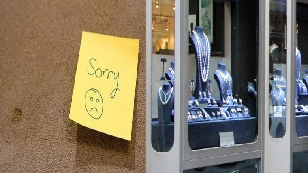 চুরি করতে গিয়ে ব্যর্থ হওয়ার খবর নতুন কিছু নয়। কিন্তু এতেই ক্ষান্ত হয়নি চোরেরা। দোকানির উদ্দেশে লিখে গেছে চিঠি। সেখানে লেখা ‘স্যরি’। ঘটনাটি ঘটেছে ভারতের উত্তরপ্রদেশের একটি স্বর্ণের দোকানে। খবর ইন্ডিয়া টাইমস’র।