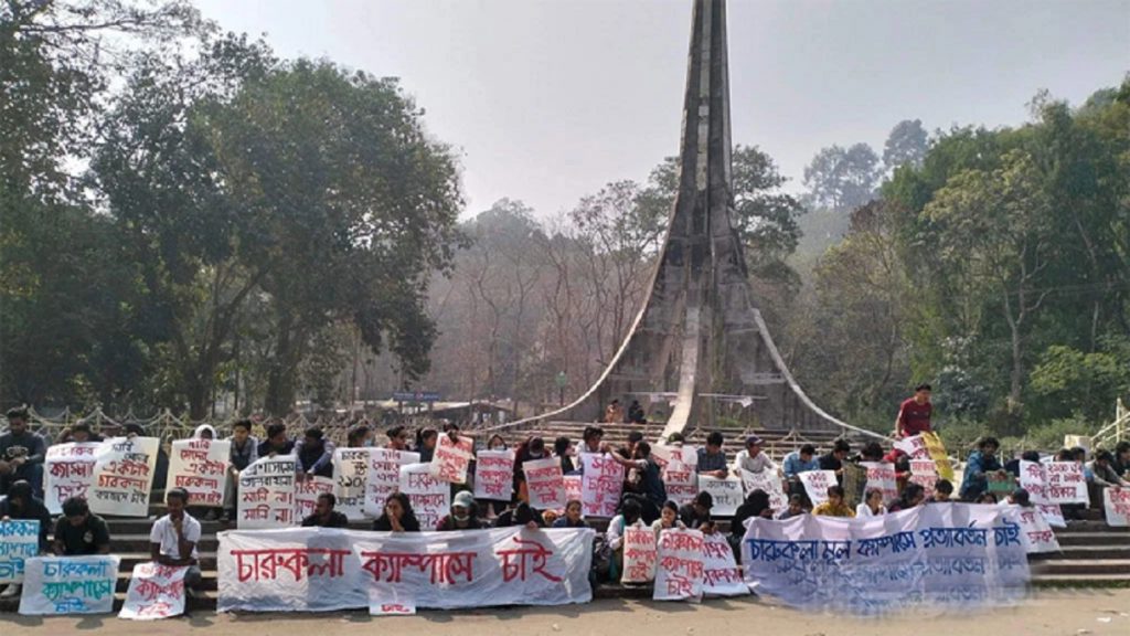 মূল ক্যাম্পাসে স্থানান্তরের দাবিতে চট্টগ্রাম বিশ্ববিদ্যালয়ে আজও (৬ ফেব্রুয়ারি) আন্দোলন করছে চারুকলা ইন্সটিটিউটের শিক্ষার্থীরা। চট্টগ্রাম বিশ্ববিদ্যালয়ের মূল ক্যাম্পাসে আন্দোলনের দ্বিতীয় দিন আজ।