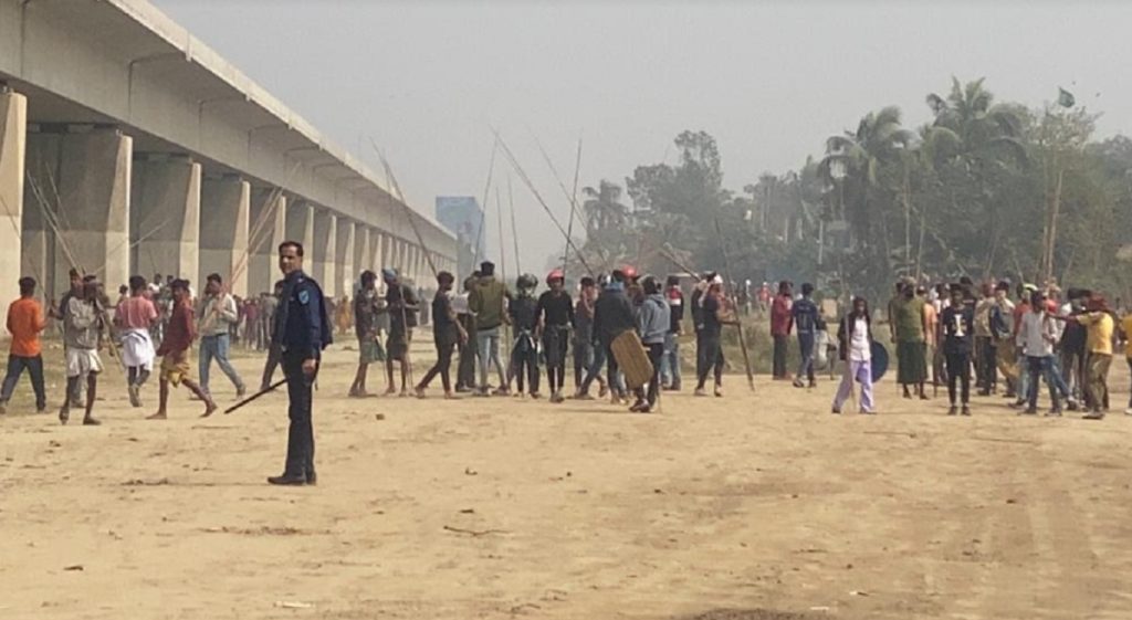 সোমবার (৬ ফেব্রুয়ারি) বেলা ১১টা থেকে ২টা পর্যন্ত দফায় দফায় খাসকান্দি-বেগম বাজার এলাকায় সংঘর্ষের এমন ঘটনা ঘটে। এ সময় ভাঙচুর চালানো হয় ৩টি মোটরসাইকেলসহ একটি গাড়ি।