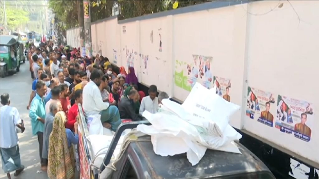 খোলাবাজারে ন্যায্যমূল্যের চালের জন্য চট্টগ্রামে দিনদিন দীর্ঘ হচ্ছে মানুষের লাইন। বন্দরনগরীর ১৪টি পয়েন্টে ওএমএস’র ট্রাক ঘিরে প্রতিদিন লেগে আছে ভিড়। ৩০ টাকা দামের চাল কিনতে ঘণ্টার পর ঘণ্টা লাইনে দাঁড়ান সীমিত আয়ের মানুষ। তবে চাহিদার তুলনায় সরবরাহ কম বলে খালি হাতে ফিরতে হয় অনেককে।