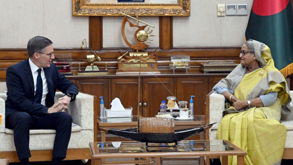 প্রধানমন্ত্রী শেখ হাসিনার সাথে সৌজন্য সাক্ষাৎ করেছেন মার্কিন পররাষ্ট্রমন্ত্রী অ্যান্থনি ব্লিংকেনের বিশেষ উপদেষ্টা ও স্টেট ডিপার্টমেন্ট কাউন্সিলর ডেরেক শোলে।