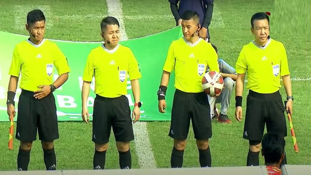এই ম্যাচে মূল রেফারি ছিলেন ভুটানের পেমা সেওয়াং। লাইন্সম্যান হিসেবে ছিলেন তারই দুই স্বদেশী পুরপা ওয়াংচুক আর পাসাং পাসাং। চতুর্থ রেফারি ভিরেন্দ রায়ও এসেছেন ভুটান থেকে।