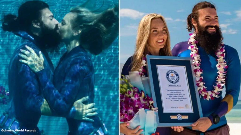 গিনেস ওয়ার্ল্ডস রেকর্ড থেকে প্রকাশিত এক বিজ্ঞপ্তিতে বলা হয়েছে, এই যুগল ইতালীয় এক টেলিভিশন শো লো শো দেই তে হওয়া ১৩ বছর আগের রেকর্ড ভেঙে দিয়েছেন। সে সময় আরেক দম্পতি পানির নিচে ৩ মিনিট ২৪ সেকেন্ডের চুম্বনের রেকর্ড গড়েছিল।
