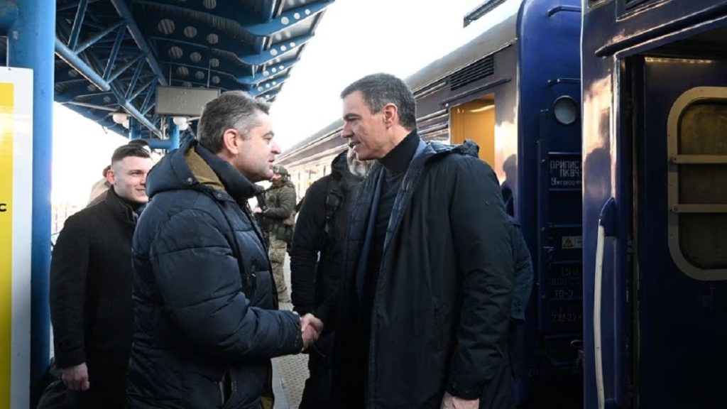 ইউক্রেন যুদ্ধের এক বছর পূর্ণ হচ্ছে শুক্রবার (২৪ ফেব্রুয়ারি)। বর্ষপূর্তির ঠিক আগমুহূর্তে দেশটির প্রতি সমর্থন জানাতেই এ সফর করলেন স্প্যানিশ প্রধানমন্ত্রী।