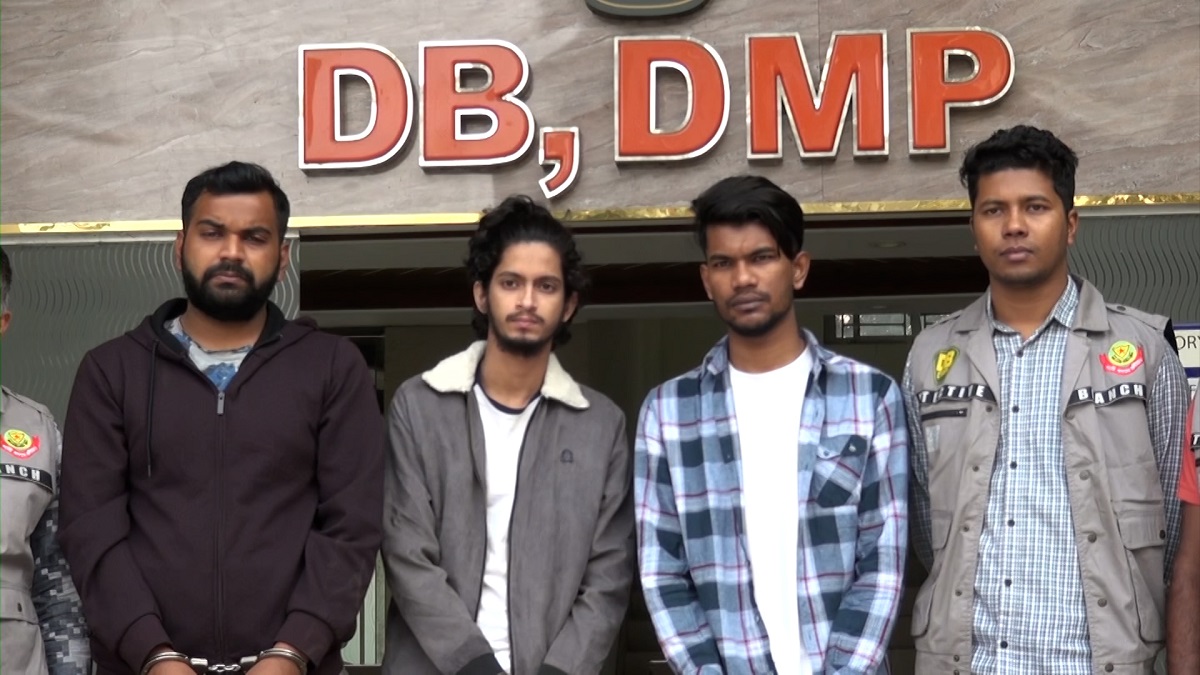 ডিবি কার্যালয়ে ইউটিউবিউবার প্রত্যয় হিরণ ও তার দুই সহযোগী।