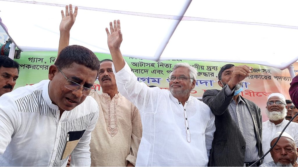 তিনি আরও বলেন, চাল ডাল, বিদ্যুৎ, গ্যাস, জ্বালানী ও ভোজ্য তেল, সারসহ নিত্য প্রয়োজনীয় জিনিসপত্রে দাম বেড়েছে তাতে সাধারণ মানুষের বেঁচে থাকা দুস্কর হয়ে পড়েছে। এই সরকার দেশ পরিচালনায় সর্বক্ষেত্রে ব্যর্থ হয়েছে। তাদের কোনো দায়বদ্ধতা নেই। কারণ, এই সরকার জনগণের ভোটে নির্বাচিত নয়। তাই গণতন্ত্র ফিরিয়ে আনতে বিএনপির ১০ দফা দাবি বাস্তবায়ন করে অবিলম্বে ক্ষমতা ছেড়ে নির্দলীয় সরকারের অধীনে জাতীয় নির্বাচন দেয়ার দাবি জানান বক্তারা।