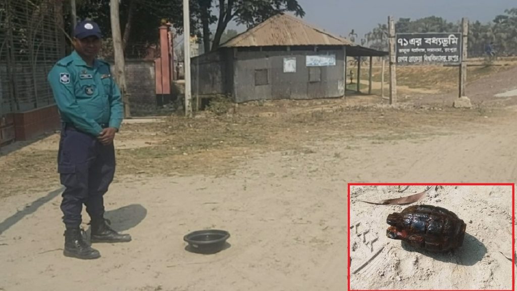 রংপুর মেট্রোপলিটন পুলিশের তাজহাট থানার ওসি নাজমুল কাদের জানান, শুক্রবার সকালে দমদমা ব্রিজের পাশে কাজ করার সময় এক গৃহবধূ ওই গ্রেনেড সদৃশ বস্তুটি দেখতে পেয়ে সেটি তিনি বাড়িতে নিয়ে যান। পরে বস্তুটি গরম হয়ে গেলে জুমার নামাজের পর ৯৯৯ নম্বরে ফোন দিয়ে থানায় খবর দেয়া হয়। খবর পাওয়ার সাথে সাথে গ্রেনেড সদৃশ ওই বস্তুটি জব্দ করে করে বধ্যভূমির পাশে গামলার পানিতে রেখে দেয়া হয়েছে।