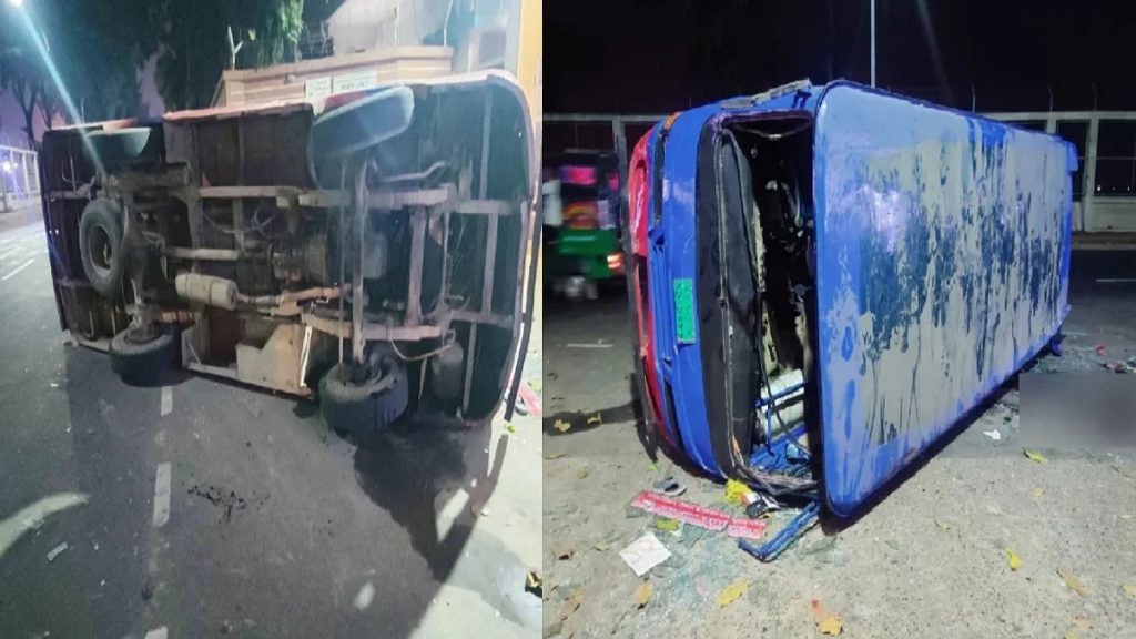সোমবার (৬ মার্চ) রাত সাড়ে দশটার দিকে নগরীর ইপিজেড এলাকায় এই দুর্ঘটনা ঘটে। মেঘনা পেট্রোলিয়াম তেল পরিশোধনাগার থেকে একটি তেলবাহী ট্রেন বের হচ্ছিল। এসময় বিমানবন্দর থেকে শহরের দিকে যাওয়া দ্রুতগামী একটি বাস সিগনাল ভেঙে সজোরে তেলবাহী ট্রেনটির ইঞ্জিনে ধাক্কা দেয়। এতে তাৎক্ষণিক উল্টে যায় বাসটি, গুরুতর আহত হন রেলের গেটম্যানসহ দুই বাসযাত্রী।