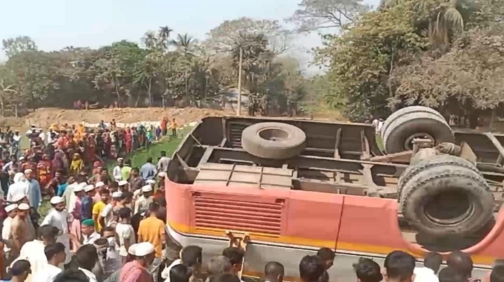 পুলিশ জানায়, ময়মনসিংহের মুক্তাগাছা নন্দীবাড়ির দারুল উলুম আল ইসলামিয়া হাফিজুল কোরআন মাদরাসার শিক্ষক-শিক্ষার্থীসহ ৭৩ জন যাত্রী নিয়ে একটি বাস সকালে দুর্গাপুরের উদ্দেশে রওনা দেয়। এদের মধ্যে বেশিরভাগই মাদরাসার শিশু শিক্ষার্থী।