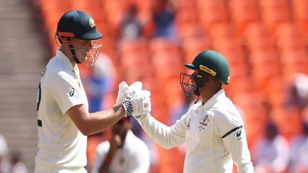 আহমেদাবাদে প্রথম দিনে করা ২৫৫ রানে ৪ উইকেট নিয়ে দ্বিতীয় দিনের খেলা শুরু করে অস্ট্রেলিয়া। শুরু থেকেই দেখেশুনে খেললেও বাজে বল পেলে ঠিকই শট খেলেছে অস্ট্রেলিয়ান ব্যাটাররা। নিজের ১৫০ তুলে নেন আগের দিনে ১০৪ রানে অপরাজিত থাকা ব্যাটার খাওয়াজা। তিনি অধিকাংশ সময় ধরে খেললেও ওয়ানডে মেজাজে ব্যাট করতে থাকেন আরেক ব্যাটার ক্যামেরুন গ্রিন। টেস্ট ক্যারিয়ারের প্রথম সেঞ্চুরি তুলে নেন এই অজি অলরাউন্ডার।