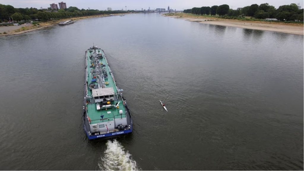 ইউরোপের দীর্ঘতম নদী রাইন। অঞ্চলটিতে মিঠা পানির গুরুত্বপূর্ণ যোগানদাতাও এই জলাশয়। কিন্তু তীব্র খরায় তলানিতে ঠেকেছে জার্মানির এই স্রোতস্বিনীর পানি। মাঝ নদীতেও জেগে উঠেছে চর। পানির স্তর এতটাই নিচে নেমে গেছে যে খালি চোখেই দেখা যাচ্ছে তলদেশে থাকা পাথর আর বালু।