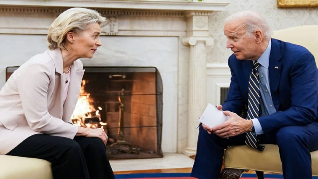 সম্পর্কোন্নয়ন, বাণিজ্যসহ নানা ইস্যুতে মার্কিন প্রেসিডেন্ট জো বাইডেনের সাথ বৈঠক করেছেন ইউরোপীয় কমিশনের প্রেসিডেন্ট উরসুলা ভন দের লিয়েন। খবর সিএনএনের।