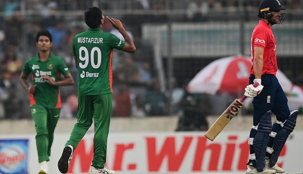 বাংলাদেশের দেয়া ১৫৯ রানের লক্ষ্যে ব্যাট করতে নেমে শুরুতেই ধাক্কা খায় ইংল্যান্ড। অভিষিক্ত তানভীর ইসলাম প্রথম ওভারের তৃতীয় বলেই আউট করেন ফিল সল্টকে। এরপরই খেলার নিয়ন্ত্রণ নেয়ার চেষ্টা করেন মালান-বাটলার। দলের সেরা দুই ব্যাটারের দ্বিতীয় উইকেট জুটিতে ৭৬ বলে আসে ৯৫ রান। জস বাটলার ও ডাভিড মালানের ব্যাটিংয়ে মনে হচ্ছিল, হোয়াইটওয়াশ এড়ানোর কাজটা অন্তত মসৃণভাবেই সাড়তে যাচ্ছে ইংলিশরা।