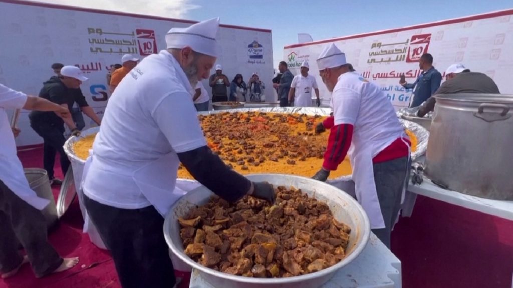 সাব্রাতাহ শহরে দেশটির বিখ্যাত ২০ জন শেফ রান্না করেছে অন্তত আড়াই হাজার কেজি কুসকুস। পরে ১৩ ফিটের বেশি ব্যাসের সুবিশাল থালায় পাঁচটি উটের মাংসের সাথে তা পরিবেশন করা হয়।