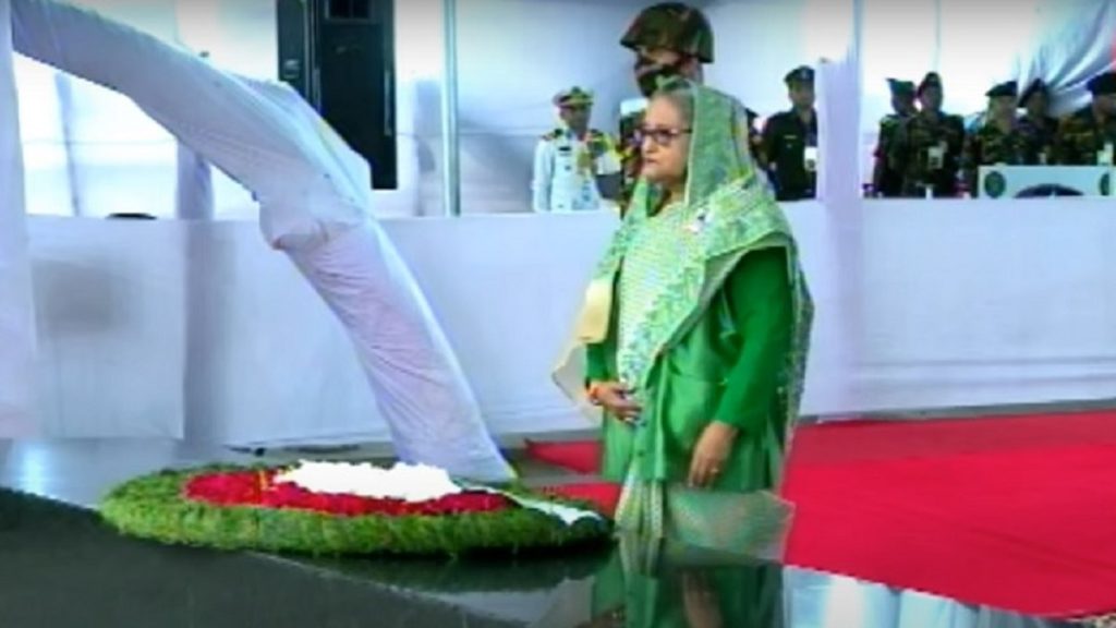 শুক্রবার (১৭ মার্চ) সকাল ৭টায় বঙ্গবন্ধুর প্রতিকৃতিতে ফুলেল শ্রদ্ধা নিবেদন করেন তিনি। এ সময় বিউগলের সুরে জাতির জনকের প্রতি জানানো হয় রাষ্ট্রীয় শ্রদ্ধা। দেয়া হয় রাষ্ট্রীয় সালাম। সর্বকালের সর্বশ্রেষ্ঠ বাঙালি বঙ্গবন্ধুর শেখ মুজিবুর রহমানকে শ্রদ্ধা জানিয়ে সেখানে কিছুক্ষণ দাঁড়িয়ে নীরবতা পালন করেন প্রধানমন্ত্রী। বঙ্গবন্ধুর আত্মার মাগফিরাত কামনায় দোয়া করেন শেখ হাসিনা। এ সময় সেখানে উপস্থিত ছিলেন আওয়ামী লীগের শীর্ষ নেতৃবৃন্দও। পরে স্পিকার শিরিন শারমিন চৌধুরী, প্রধান বিচারপতি হাসান ফয়েজ সিদ্দিকী ও সংসদ উপনেতা শ্রদ্ধা জানান প্রতিকৃতিতে।