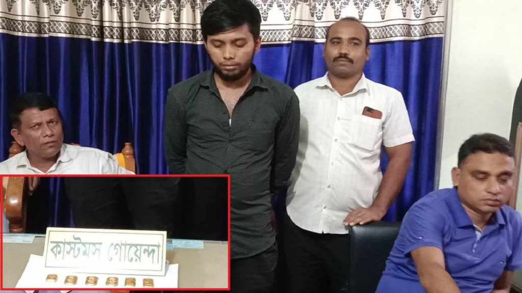 সাতক্ষীরার ভোমরা স্থল বন্দর এলাকায় শুভংকর পাল নামে এক পাসপোর্ট যাত্রীর পায়ুপথে লুকানো ছয়টি স্বর্ণের বার উদ্ধার করেছে শুল্ক গোয়েন্দা। শুক্রবার (১৭ মার্চ) সকাল সাড়ে ১০টার দিকে তাকে আটক করা হয়। পরবর্তীতে এক্সরে করে এ স্বর্ণের বিষয়ে জানতে পারে কাস্টমস পুলিশ। আটককৃত শুভংকর পাল নড়াইল জেলার কালিয়া উপজেলার মাউলি গ্রামে বিকাশ কুমার পালের ছেলে।