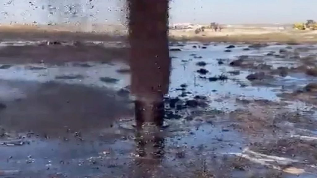 কুয়েতের আল রাই পত্রিকার টুইটারে প্রকাশিত এক ভিডিওতে একটি বিরান ভূমিতে তেলের পাইপ থেকে বিপুল পরিমাণ তেল বেরোতে দেখা গেছে।