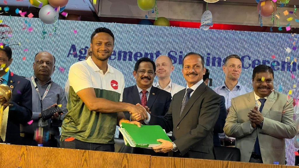 সাকিবের সঙ্গে ব্র্যান্ডিং ইস্যুতে চুক্তিবদ্ধ হওয়ার বিষয়ে গতকাল সোমবার এক সংবাদ বিজ্ঞপ্তিতে জানিয়েছিল বিমান বাংলাদেশ।