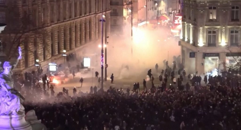 মঙ্গলবার রাজধানীর মূল চত্বরে জড়ো হন কয়েক হাজার আন্দোলনকারী। এ সময় দোকানপাটে ভাঙচুর চালানোর পাশাপাশি বেশ কিছু মোটরসাইকেলে অগ্নিসংযোগ করেন ক্ষুব্ধ ফরাসিরা। জমে থাকা আবর্জনার স্তূপেও লাগিয়ে দেয় আগুন। পরিস্থিতি নিয়ন্ত্রণে পুলিশের পাশাপাশি রাস্তায় নামে ফায়ার সার্ভিসের সদস্যরা। ধরপাকড়ে আটক হন শতাধিক মানুষ।