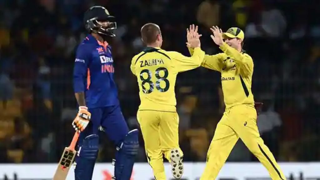 জবাবে ঝড়ো শুরু পায় ভারত। ১৭ বলে ৩০ রান করে ফেরেন রোহিত শর্মা। ৩৭ রানে আউট হন আরেক ওপেনার শুভমন গিল। ইনিংস সর্বোচ্চ ৫৪ রান আসে ভিরাট কোহলির ব্যাট থেকে। শেষ দিকে হার্দিক পান্ডিয়া ৪০ রান করলেও পরাজয় এড়াতে পারেনি ভারত। এক ওভার বাকি থাকতেই ২৪৮ রানে থামে দলটির ইনিংস। চার উইকেট নিয়ে ম্যাচসেরা হন অ্যাডাম জাম্পা।