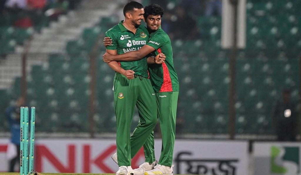 ১২ বলের মাঝেই ৪ উইকেট- তাসকিন আহমেদের টি-টোয়েন্টির ক্যারিয়ার সেরা বোলিংয়ে আয়ারল্যান্ডকে ২২ রানে হারিয়ে সিরিজে ১-০’তে এগিয়ে গেছে বাংলাদেশ। বৃষ্টি বিঘ্নিত ম্যাচে ঝড়ো ব্যাটিংয়ে রনি তালুকদার ও লিটন দাস শুরুতেই বেধে দিয়েছিলেন আক্রমণাত্মক ক্রিকেটের সুর। শামীম পাটোয়ারী ও অধিনায়ক সাকিব আল হাসানের ক্যামিওতে ১৯.৪ ওভারে ৫ উইকেট হারিয়ে ২০৭ রানের বড় সংগ্রহ গড়ে টাইগাররা। বৃষ্টিতে পরিবর্তিত ৮ ওভারে ১০৪ রানের লক্ষ্যে খেলতে নেমে তাসকিনের তাণ্ডবে নির্ধারিত ওভারে ৫ উইকেট হারিয়ে সর্বসাকুল্যে ৮১ রান তুলতে পেরেছে পল স্টার্লিংয়ের দল।