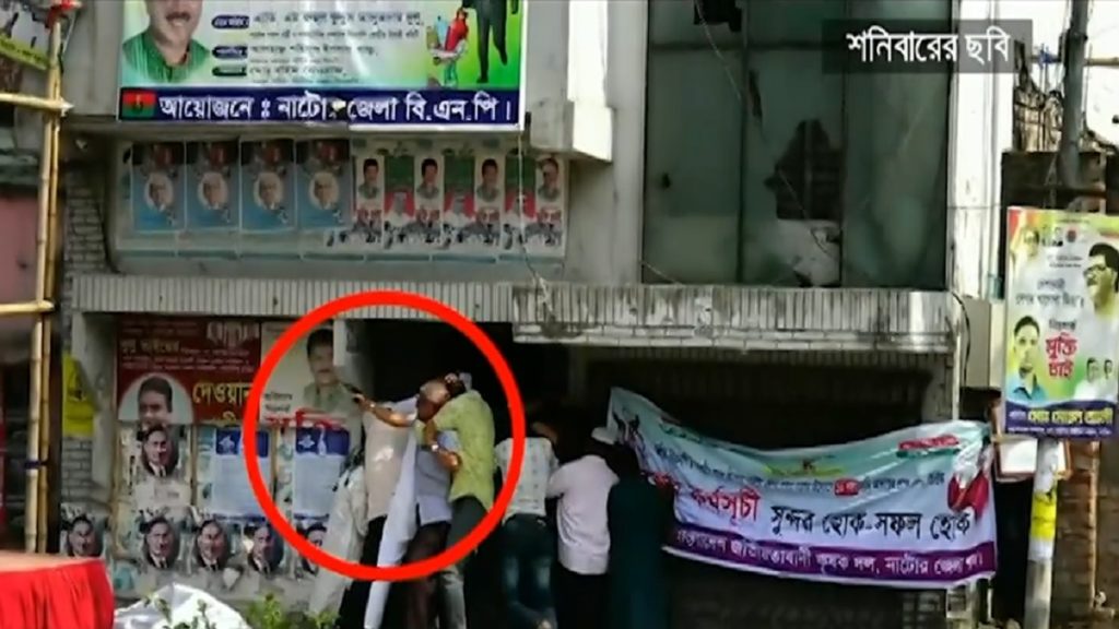 নাটোরে বিএনপি ও আওয়ামী লীগ নেতাকর্মীদের সংঘর্ষ চলাকালে প্রকাশ্যে অস্ত্রের মহড়া দেখালেন এক বিএনপি নেতা। ছুড়েছেন গুলিও।