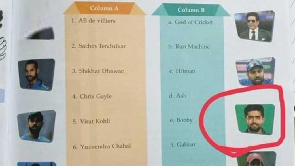 ভারতের জনপ্রিয় খেলা ক্রিকেট। অষ্টম শ্রেণির পাঠ্যবইয়ে জনপ্রিয় ক্রিকেট প্লেয়ারদের নিয়ে রাখা হয়েছে দু’টি কলাম। যেখানে একটি কলামে ক্রিকেটারদের নাম এবং অন্য কলামে সেসব ক্রিকেটারের ডাকনাম দেয়া হয়েছে। শিক্ষার্থীদের বোঝার সুবিধার্থে ক্রিকেটারের ডাকনামের পাশেই রাখা হয়েছে সেই ক্রিকেটারের ছদ্মনাম। টেন্ডুলকারের ক্ষেত্রে যেমন ‘গড অব ক্রিকেট’, রোহিত শর্মার ‘হিটম্যান’, গেইলের ‘ইউনিভার্স বস’ এবং বাবরের ছবিটা তার ‘ববি’ ডাকনামের পাশেই।
