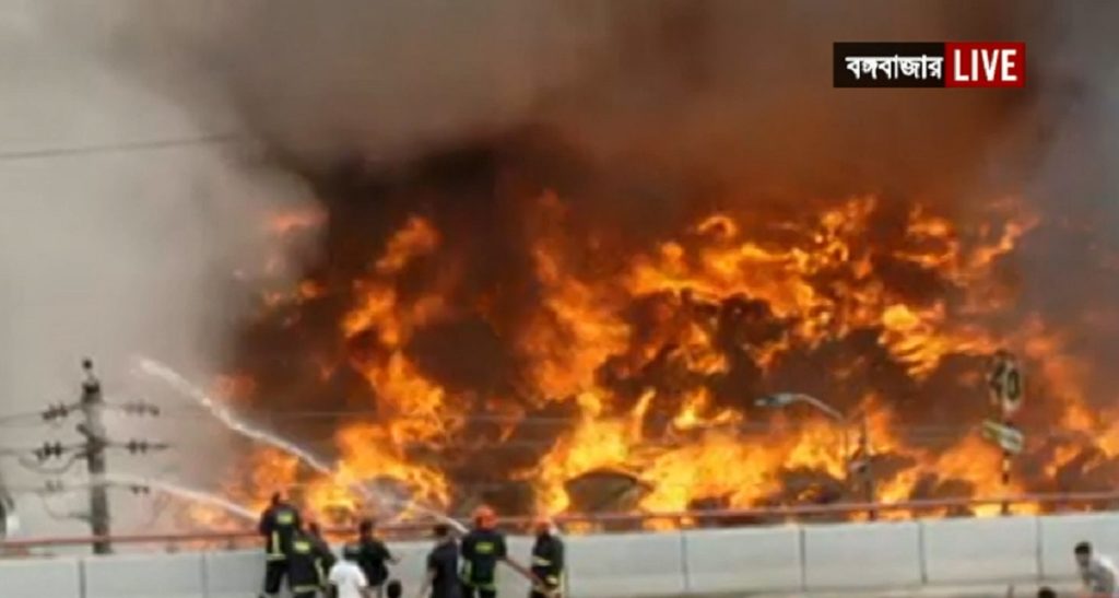 কিছুতেই নিয়ন্ত্রণে আসছে না রাজধানীর বঙ্গবাজার মার্কেটে লাগা ভয়াবহ আগুন। আগুন নিয়ন্ত্রণে কাজ করছে ফায়ার সার্ভিসের ৫০টি ইউনিট। এত বিপুল সংখ্যক ইউনিট দিয়ে অগ্নিনির্বাপনের ঘটনা নজিরবিহীন। তাতেও মিলছে না কোনো স্বস্তির আপডেট। বরং আশেপাশের আরও ৪টি ভবনে আগুন ছড়িয়ে পড়েছে। সেটি ঠেকাতেই সর্বোচ্চ প্রচেষ্টা চালাচ্ছে ফায়ার সার্ভিসের কর্মীরা। ঢাকা বিশ্ববিদ্যালয়ের শহীদুল্লাহ হল ও ফজলুল হক মুসলিম হলের মধ্যবর্তী পুকুর থেকে নেয়া হচ্ছে পানি।