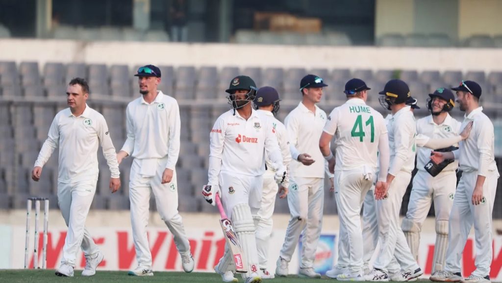 যদিও লোয়ার মিডল অর্ডার ব্যাটারদের কল্যাণে আবারও ম্যাচ হেলে পড়ে সফররতদের পাশে। লোরকান টাকার ৩৭, মার্ক অ্যাডেয়ার ৩২ আর এন্ডি ম্যাকব্রাইনের ১৯ রানে ভর করে দুইশ’ রানের কোটা পার করে আয়ারল্যান্ড। শেষ পর্যন্ত তাইজুলের ৫ উইকেট শিকারে ২১৪ রানে গুটিয়ে যায় তাদের ইনিংস। দু’টি করে উইকেট নিয়েছেন মিরাজ আর এবাদত। তবে ম্যাচে দেখার মতো বিষয় ছিল, সাকিবের বল হাতে আক্রমণে আসা। অধিনায়ক হয়ে ইনিংসের ৬৬ তম ওভারে প্রথম বল করতে আসেন সাদা পোশাকের এই অধিনায়ক।
