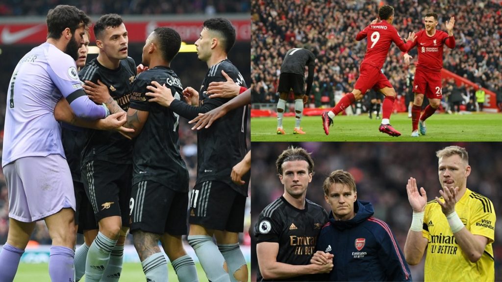 প্রথমার্ধের খেলায় মনে হয়েছিল, অ্যানফিল্ডে জয় না পাওয়ার এক দশকের খরা হয়তো ঘুচতে যাচ্ছে গানারদের। গ্যাব্রিয়েল মার্তিনেল্লি ও গ্যাব্রিয়েল জেসুসের গোলে প্রথমার্ধেই ২ গোলের লিড নেয় আর্সেনাল। তবে, প্রথমার্ধেই মোহামেদ সালাহর এক গোলের পর দ্বিতীয়ার্ধের শেষদিকে রবার্তো ফিরমিনো আর্সেনালের বিপক্ষে তার গোলের ট্যালি ৮’এ নিয়ে গেলে কেবল ম্যাচই নয়, জমে ওঠে প্রিমিয়ার লিগ শিরোপার লড়াইও।
