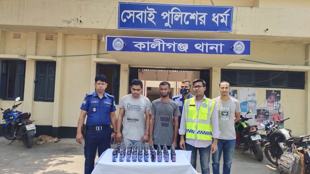 কালীগঞ্জ থানার ওসি আব্দুর রহিম মোল্যা জানান, গোপন সংবাদের ভিত্তিতে সোমবার ভোরে ৬০ বোতল ফেনসিডিলসহ দুই মাদক ব্যবসায়ীকে আটক করা হয়। এ ঘটনায় কালীগঞ্জ থানায় মাদক দ্রব্য নিয়ন্ত্রণ আইনে মামলা দায়ের হয়েছে।