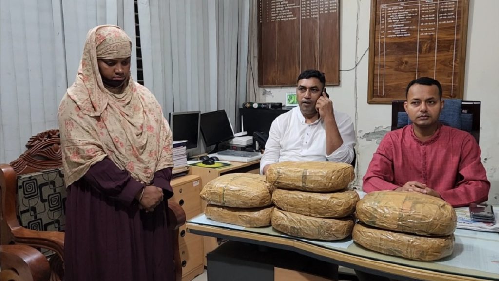 আটক হাবিবা (৩০) বাঘেরহাট জেলার মরনখোলা থানার বানিয়াখালি এলাকার রুহুল আমিন আকনের স্ত্রী।
