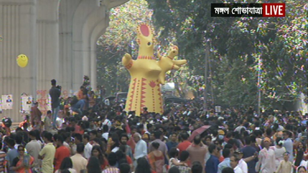 এ বছর ‘বরিষ ধরা-মাঝে শান্তির বারি’ প্রতিপাদ্য নিয়ে চারুকলা অনুষদ থেকে সকাল ৯টায় মঙ্গল শোভাযাত্রা বের করা হয়। মঙ্গল শোভাযাত্রা শাহবাগ মোড় হয়ে টিএসসি হয়ে পুনরায় চারুকলা অনুষদে গিয়ে শেষ হয়। মঙ্গল শোভাযাত্রায় যোগ দিতে সকাল থেকেই চারুকলা এলাকায় জড়ো হন হাজারও মানুষ। সকল ধর্ম-বর্ণ- শ্রেণি বিভেদ মিশে একাকার হয়ে যায় ঢাকা বিশ্ববিদ্যালয় এলাকা। শোভাযাত্রায় আবহমান বাংলার ইতিহাস-ঐতিহ্যের নানা বিষয় স্থান পেয়েছে।