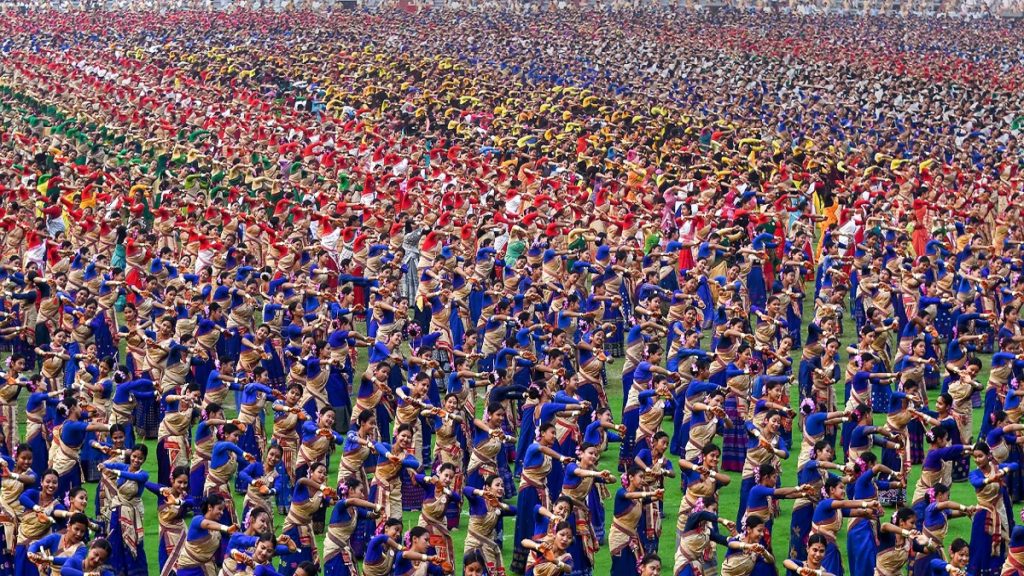 ১১ হাজার নৃত্যশিল্পীর পরিবেশনায় ঐতিহ্যবাহী বিহু নাচে গিনেস বুক অব ওয়ার্ল্ড রেকর্ড গড়লো ভারত। শুক্রবার (১৫ এপ্রিল) সবচেয়ে বড় লাইভ পারফরমেন্সের তকমা অর্জন করেন আসামের শিল্পীরা। খবর এনডিটিভির।