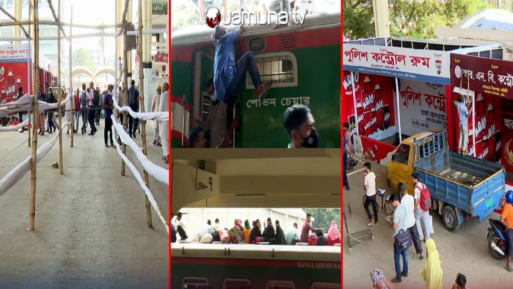প্রতি বছর ঈদের সময়ে একটি পরিচিত দৃশ্য হচ্ছে, ট্রেনের ছাদে, ইঞ্জিনের সামনে, দরজায়- সর্বত্র ঘরমুখো যাত্রীর ভিড়। দাঁড়িয়ে কিংবা ঝুলে ঝুলে টিকিট ছাড়াই গন্তব্যে যাচ্ছে শত শত যাত্রী। বিনা টিকিটের যাত্রীদের কারণে অনেকে টিকিট কেটেও ট্রেনে উঠতে পারেন না। এই ঝুঁকিপূর্ণ যাত্রা কখনোই বন্ধ করা যায়নি। তবে এবার সেই কঠিন কাজ কীভাবে সম্ভব হবে, সে প্রসঙ্গে কমলাপুর রেলওয়ে স্টেশনের ম্যানেজার মাসুদ সারওয়ার বলেন, আমরা বিশ্বাস করি, সরকারের যে সকল এজেন্সি আছে যেমন, স্ট্রাইকিং ফোর্স, র্যাব, বিজিবি সকলেই যদি সহযোগিতা করে তবে আশা করি আমরা বিনা টিকিটে রেল ভ্রমণকে এবার রুখে দিতে পারবো।