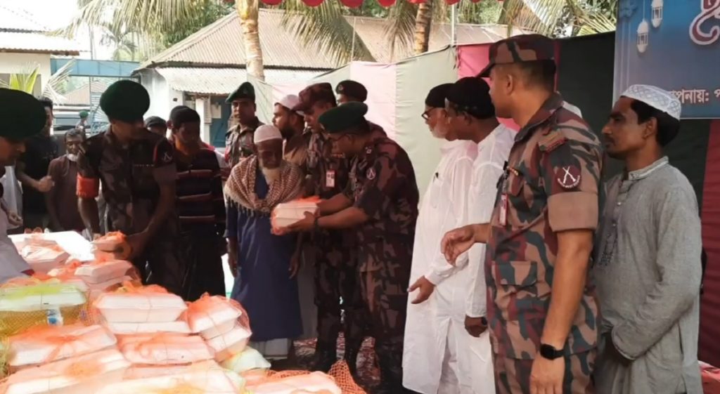 রোববার (১৬ এপ্রিল) বিকেলে জেলার বোদা উপজেলার ময়দানদিঘী ইউনিয়নের ভিমপুকুর এলাকার আল মারকাজুল ইসলামী দারুচ্ছুন্নাহ উলুম মাদরাসা মাঠে পঞ্চগড় ১৮ বিজিবি ব্যাটালিয়নের উদ্যোগে এ ইফতার সামগ্রী ও রাতের খাবার বিতরণ করা হয়।