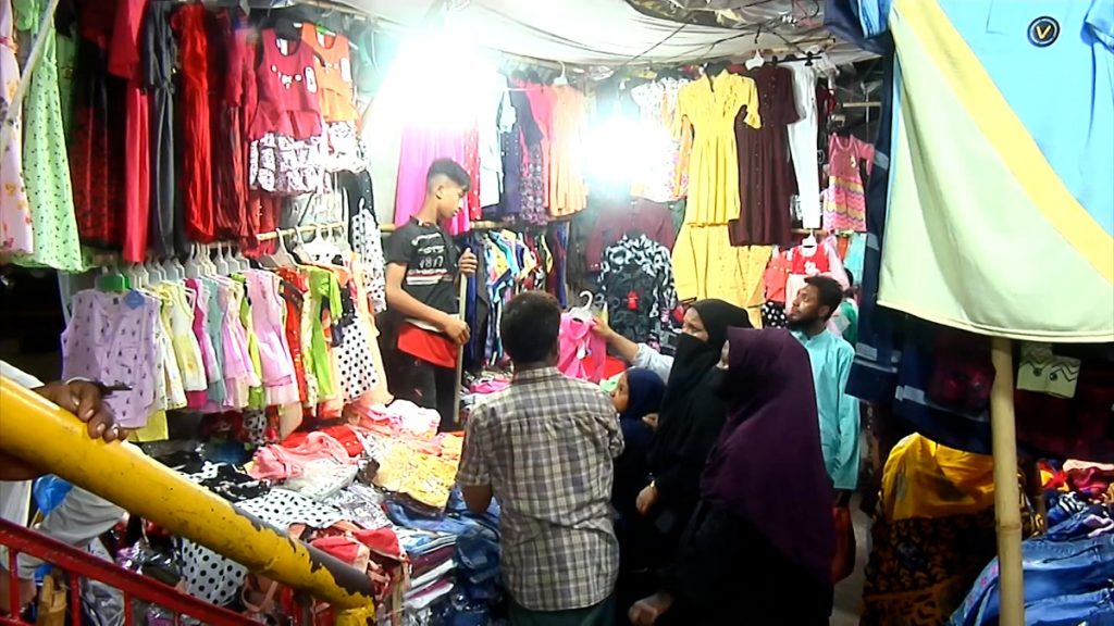 সন্ধ্যার পর থেকে সেখানে ক্রেতাদের ঢল লেগে থাকে। তুলনামূলক কম দামে জামা-জুতাসহ সবকিছু পাওয়া যায় বলে ফুটপাতের এসব দোকানে নিম্ন ও মধ্যবিত্তদের ভিড় বেশি। তবে চড়া দাম, বিদ্যুৎ বিভ্রাট ও তীব্র দাবদাহের কারণে আগের চেয়ে বেচাকেনা কম বলছেন বিক্রেতারা।