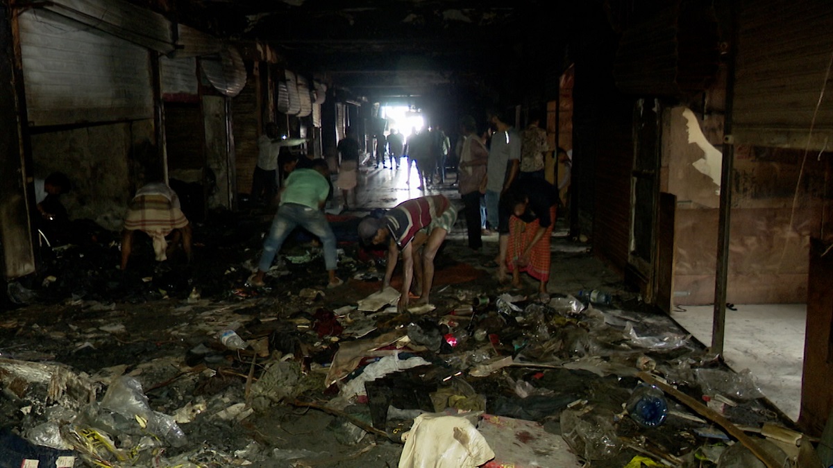নিজের শ্রমে-ঘামে গড়া প্রতিষ্ঠান চোখের সামনে পুড়ে ছাই। ছাইয়ের মধ্যেও কিছু খুঁজে পাওয়ার চেষ্টা ব্যবসায়ীদের। ঈদের জন্য জামা-কাপড়, নতুন পোষাক তোলা হয়েছিলো দোকানগুলোতে। পুড়ে যাওয়া দোকানে সে ছাপ স্পষ্ট। মারামালের সঙ্গে ব্যবসার পুঁজি নগদ টাকা হারিয়ে দিশেহারা রাজধানীর নিউ সুপার মার্কেটের অনেক ব্যবসায়ী।