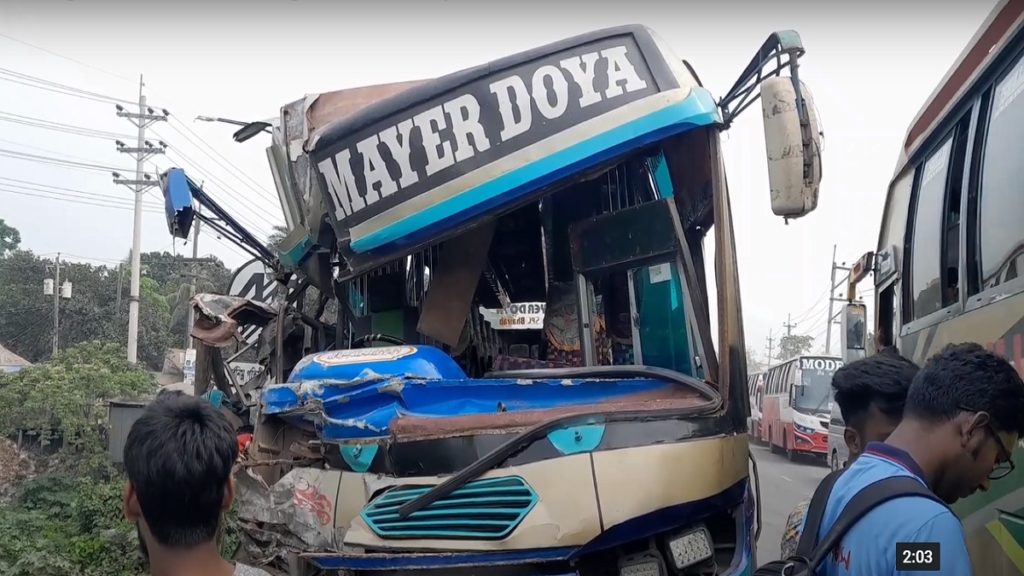 পুলিশ জানায়, সকালে কিশোরগঞ্জ থেকে একটি যাত্রীবাহী বাস কারারচর মিল গেইট এলাকায় পৌঁছলে নরসিংদী থেকে ইটাখোলাগামী হাইওয়ে মিনিবাস ও একটি পিকাপভ্যানের সাথে মুখোমুখী সংঘর্ষ বাধে। এতে ঘটনাস্থলেই মনির হোসেন নামে এক যাত্রীর মৃত্যু হয়। এতে উভয় যানবাহনের অন্তত ২৫ জন আহত হয়। এদের মধ্যে বেশ কয়েকজনকে ঢাকা মেডিকেল কলেজ ও জাতীয় পঙ্গু হাসপাতালে প্রেরণ করা হয়।
