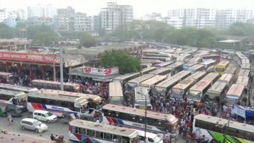 কর্তৃপক্ষ বলছে, মহাসড়কে যানজটের কারণে নির্ধারিত সময় বাস ছাড়া যাচ্ছে না। বাসের টিকিটের আশায় বসে না থেকে পিকআপ বা ট্রাকেও বাড়ির পথ ধরেছেন নিম্ন আয়ের মানুষ।