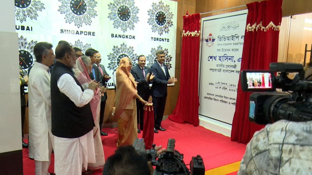 রাজধানীর হযরত শাহজালাল (রহ.) আন্তর্জাতিক বিমানবন্দরে নবনির্মিত ভিভিআইপি লাউঞ্জ উদ্বোধন করেছেন প্রধানমন্ত্রী শেখ হাসিনা।
